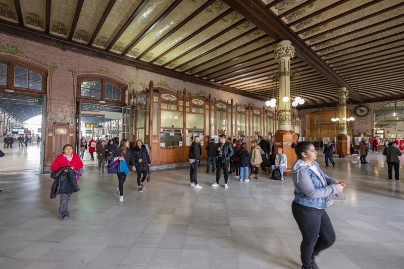Binnenin het treinstation valt het vele keramiek op. Deze kunstwerken heten trencadís (een mozaïekstijl) en versieren onder andere de pilaren en delen van het plafond. Het interieur is een combinatie van hout, glas, marmer, metaal en keramiek. Leuk om te weten is dat er binnen op de wanden kleine bordjes hangen waarop in allerlei verschillende talen ’goede reis’ is geschreven in mozaïek.