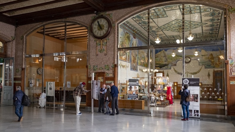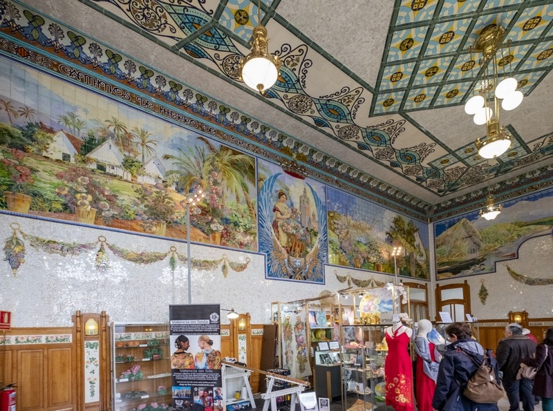 Wanneer je het station binnenloopt, loop je direct tegen de houten loketten aan. Dit zijn de originele loketten. Een aantal jaar terug werd er besloten deze te moderniseren. Glazen loketten werden op een andere plek in het station gebouwd waar je voortaan de treintickets kon kopen. Maar al snel werd teruggeschakeld naar de authentieke loketten en werden de moderne loketten verwijderd. Rechts ligt de voormalige wachtruimte voor de rijke Valencianen uit de twintigste eeuw. De wanden zijn bedekt met mozaïek waarop de Valenciaanse landbouw is afgebeeld. Je ziet onder andere het natuurgebied Albufera. Tegenwoordig wordt deze ruimte voornamelijk gebruikt als expositieruimte.