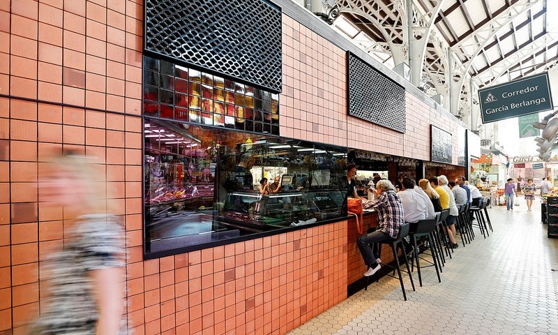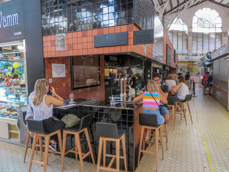 In het midden van de markthal vind je Central Bar, de oude marktbar waar chefkok Ricard Camarena een nieuwe invulling geeft aan tapas en bocadillos (rijk belegd stokbrood) met de beste ingrediënten van de markt. Sterrenchef Camarena heeft meerdere luxe restaurants in Valencia en opende een aantal jaar geleden ook deze bar in de Mercado Central. De bar valt meteen op want ze heeft een geweldig design met baksteen en zwarte glimmende tegels. Neem plaats aan de bar en de obers zorgen er in razendsnel tempo voor dat je zit te smullen van patatas bravas, croquetas de jamon, ribbetjes met bloemkool en knoflook, gegrilde inktvis en gemarineerde ansjovis.